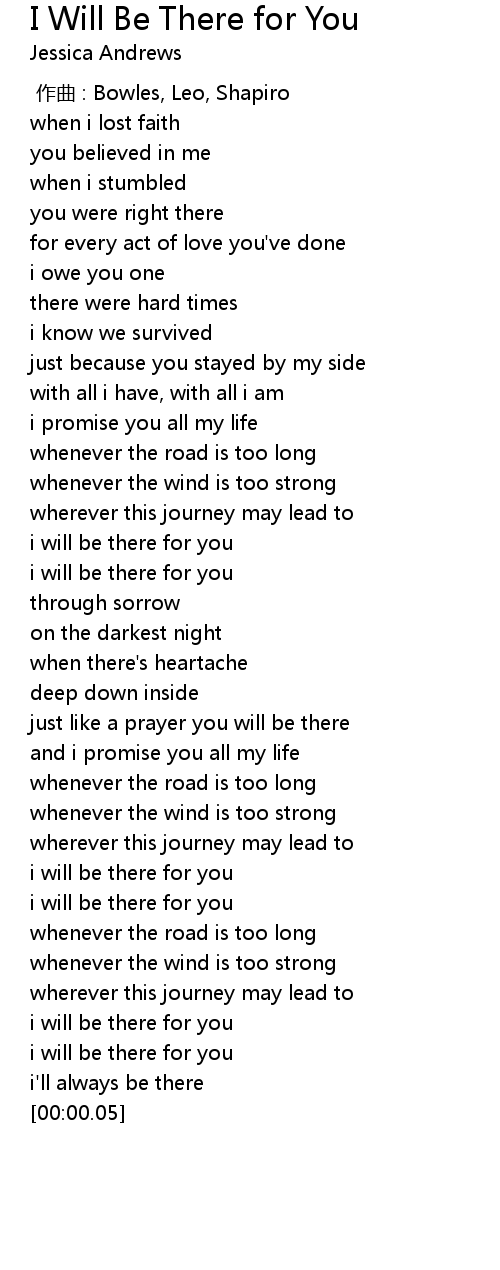 I Will Be There For You 1 Lyrics Jessica Andrews