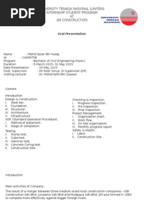 Internship Student Program Structural Engineering Industries