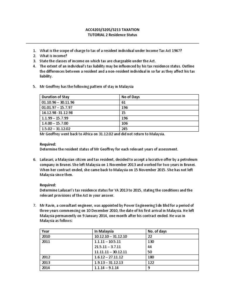 Tutorial 2e Residence Status Public Finance Taxes
