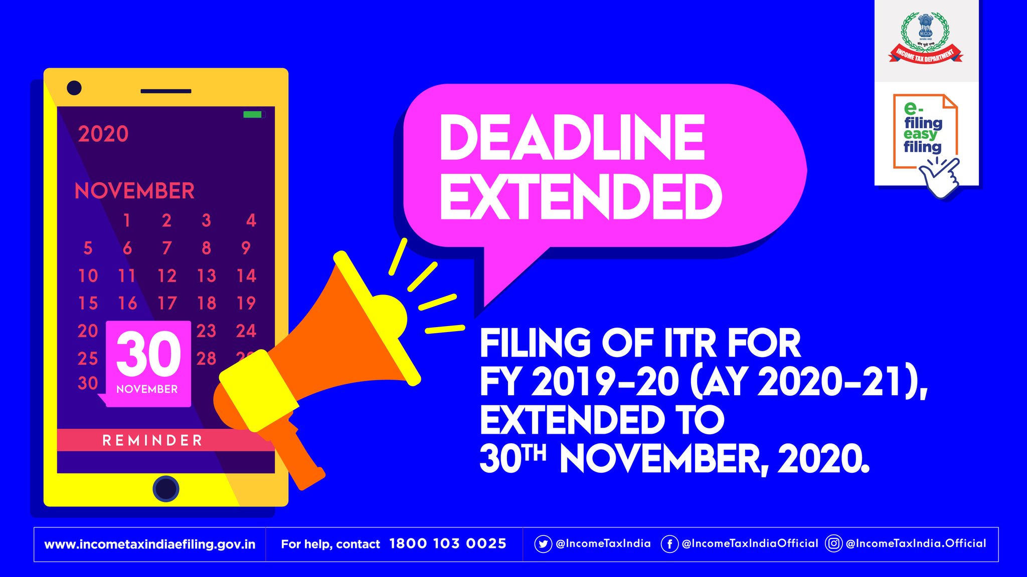 Income Tax India On Twitter Understanding Keeping In Mind The Times That We Are In We Have Further Extended Deadlines Now Filing Of Itr For Fy 2019 20 Is Extended To 30th