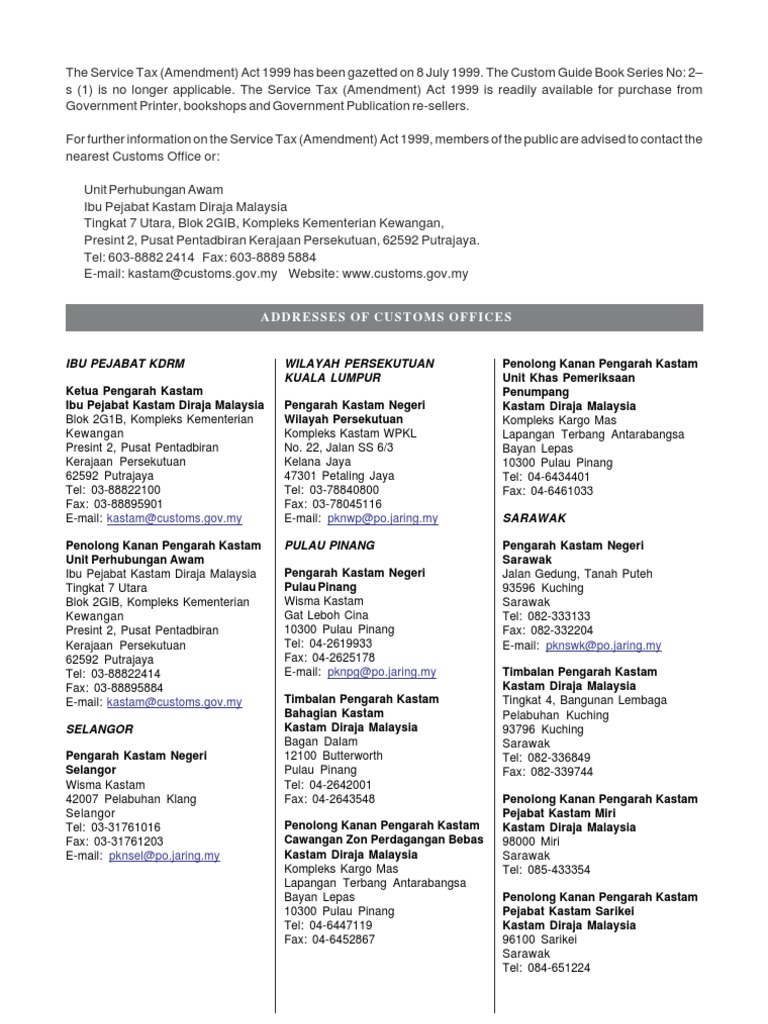 Ibu Pejabat Kastam Diraja Malaysia Tel I 03 88822100 300