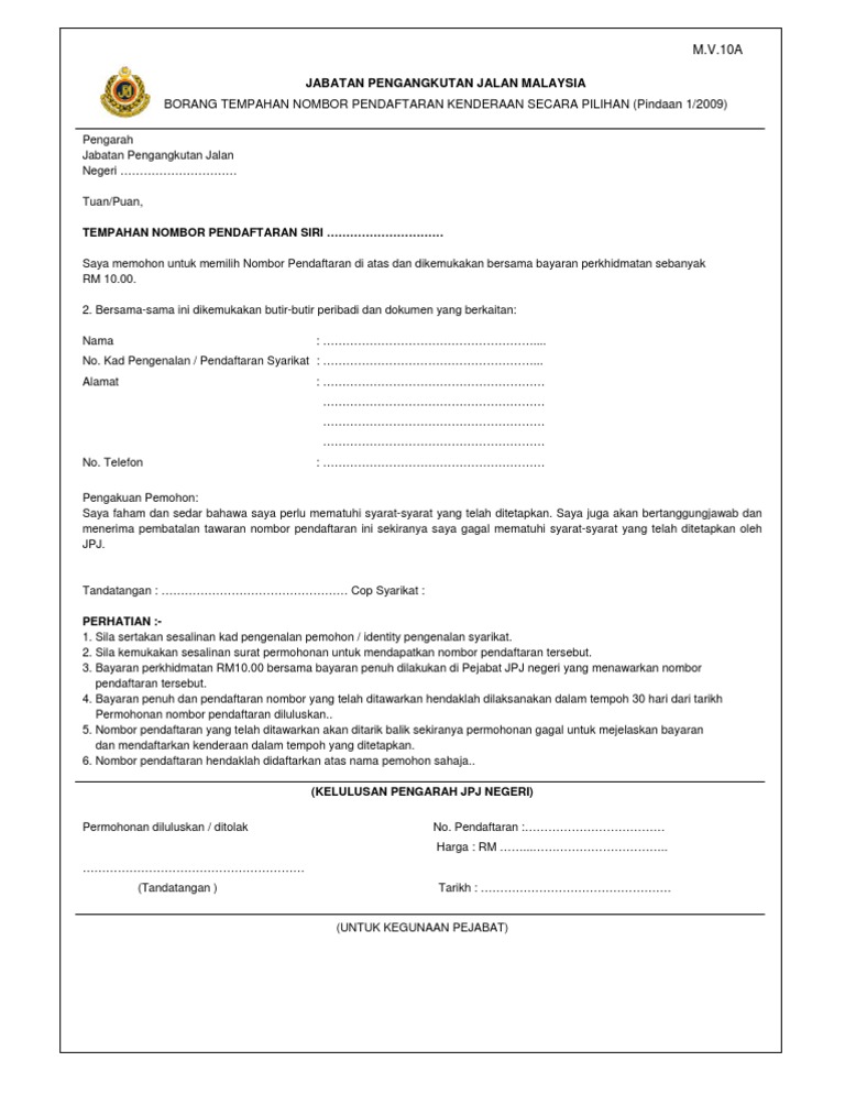 Jpj No Plate Tender Result Johor Tender Form M V10
