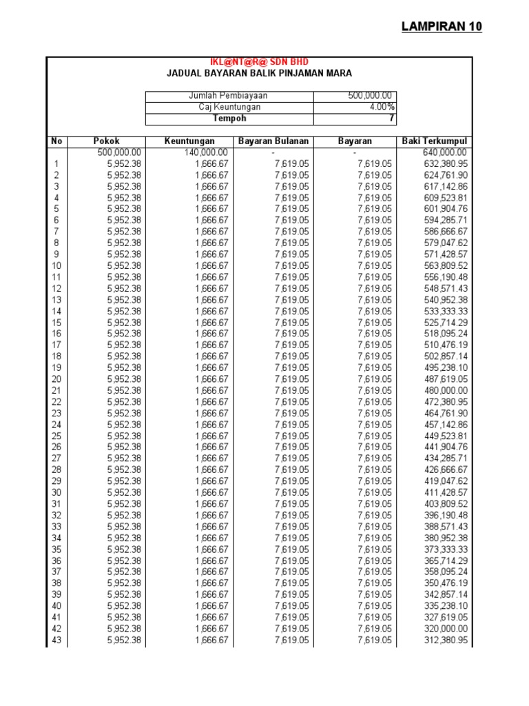Lampiran 10 Jadual Bayaran Balik Pinjaman Mara