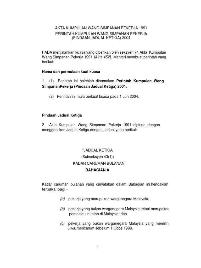 Employee Provident Fund Epf Kwsp Epf Act 1991 Act 452 Third Schedule Factor Income Distribution Employment Compensation