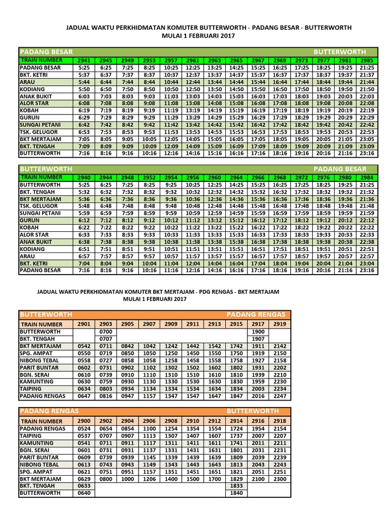 Butterworth Penang Padang Besar Komuter Train Schedule 2020 Jadual Ktm