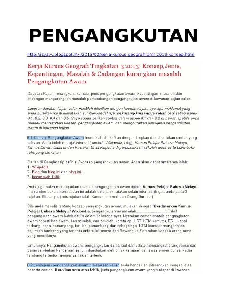 Pdf Contoh Folio Geografi Tingkatan 3 Pengangkutan Awam Ck Anesh Academia Edu