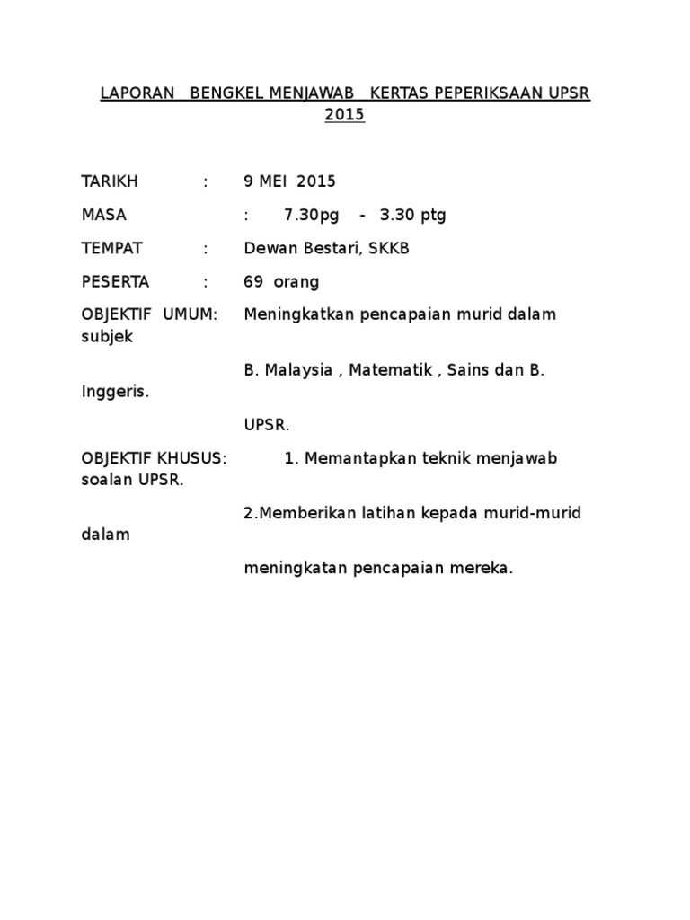 Laporan Bengkel Menjawab Kertas Peperiksaan Upsr 2015