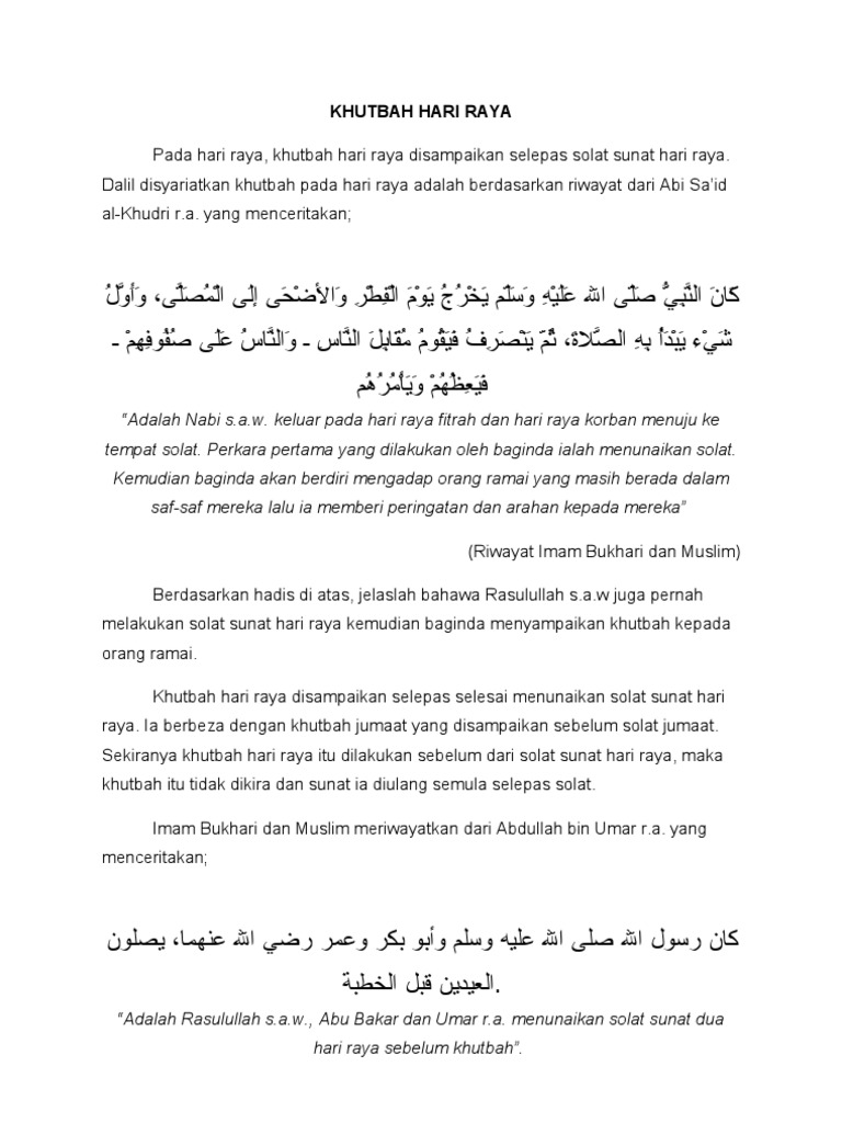 Cara Solat Hari Raya Aidil Fitri Dan Teks Khutbah Hari Raya